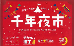 2013年から始まり、今年で六年目を迎える千年夜市。 「千年夜市」というのは、清流公園(キャナルシティ博多そば、川沿いの広場)で行われるナイトマーケットです。 このナイトマーケットでは、美味しいグルメ …